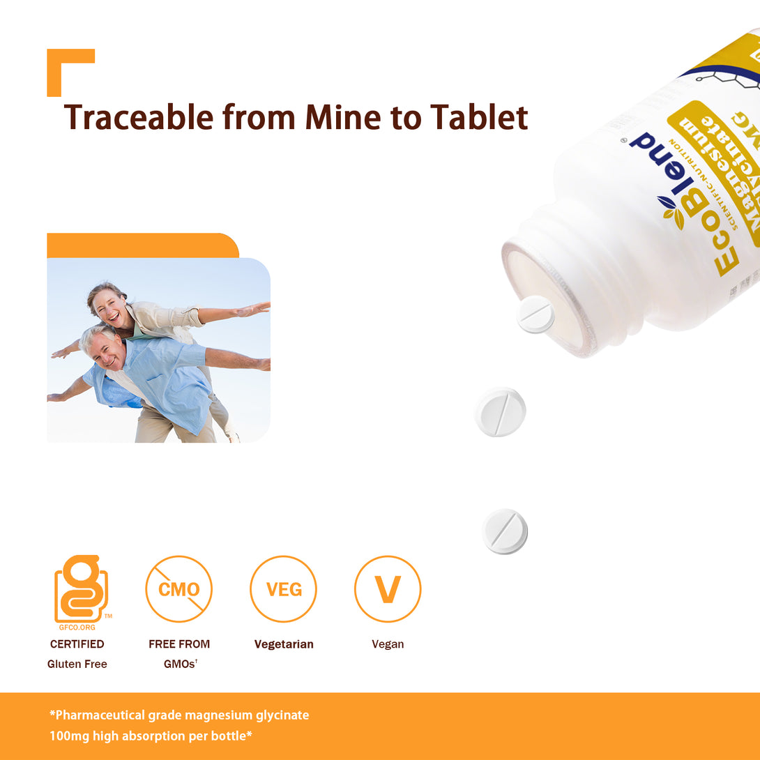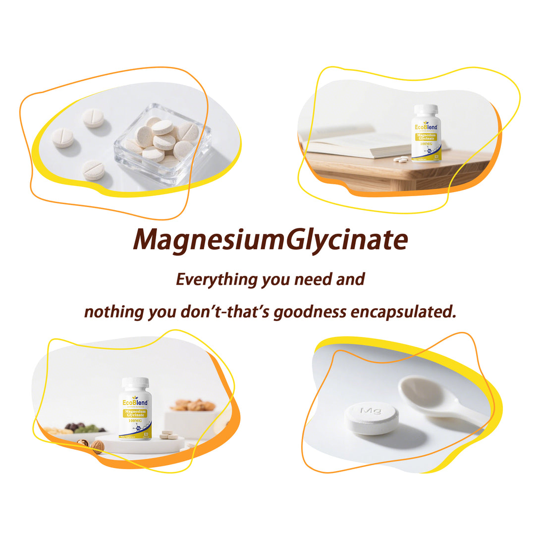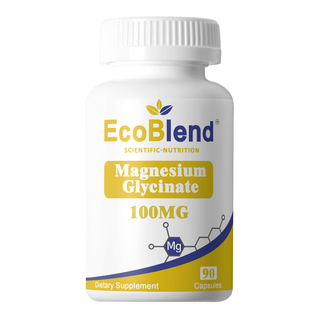 EcoBlend Glycine Magnesium is a dietary supplement designed for muscle relaxation and stress relief. Each capsule contains 100mg of magnesium, supporting your well-being. Perfect for fitness enthusiasts, it comes in a pack of 90 capsules. This supplement is an essential addition to your health routine.